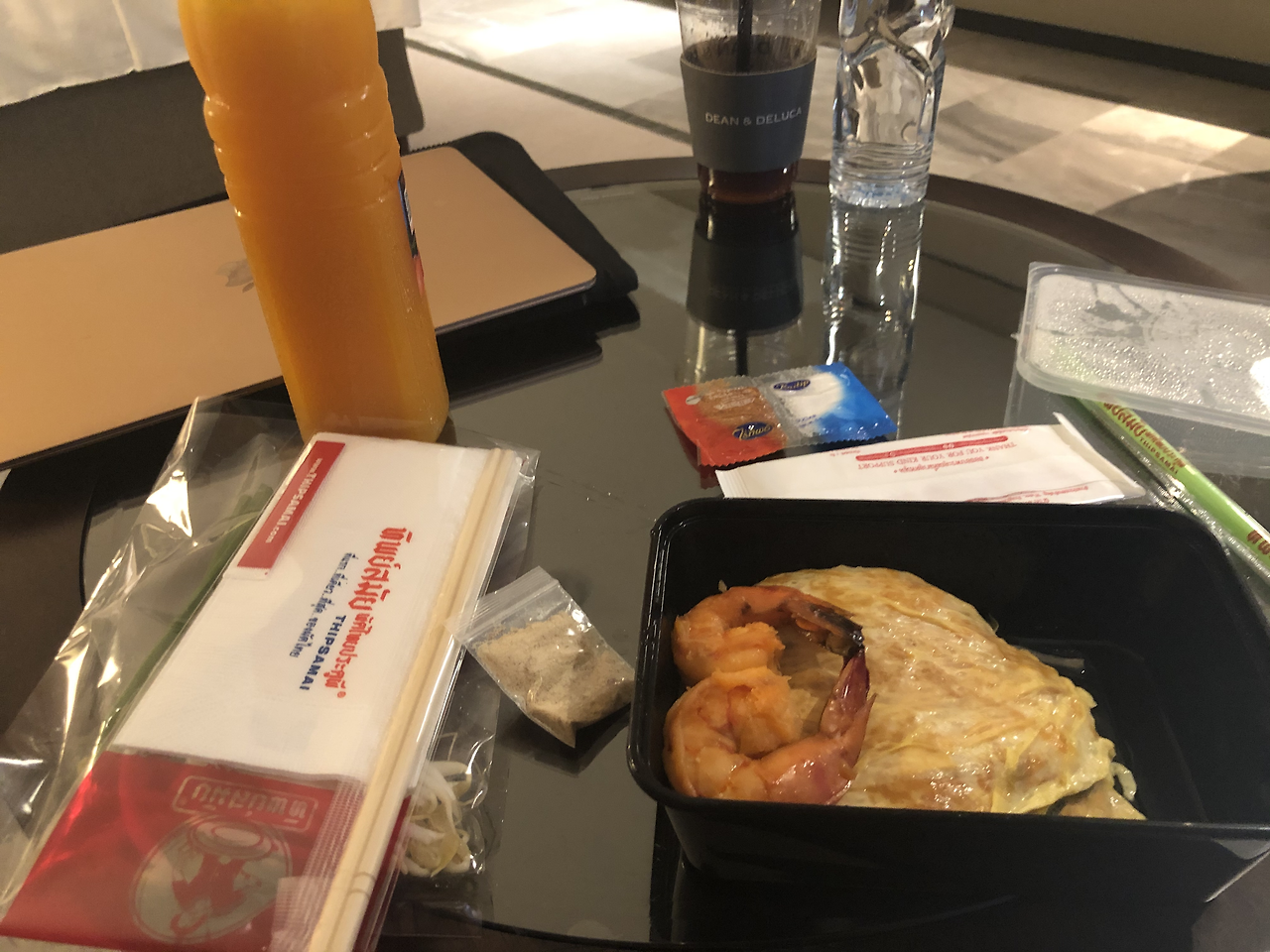 잘 정돈된 베딩을 바라보고 몇 시간째 테이블에 앉아 일만 했다. 그래도 이곳이 익숙한 동네 프롬퐁이고 방콕이라는 것이 좋았다. 수영장엔 갈 수 없었지만, 기지개를 하며 사람들이 태닝을 하는 것을 보는 것만으로 충분한 휴식이 되었다. 그리고 대망의 5시가 되자마자 딜리버리 어플을 켜서 팁 싸마이를 주문했다. 두 개 시켰어도 충분히 둘 다 격파할 수 있는 양이다. 항상 동남아 출장 올 때마다 느끼는 게 양이 너무 작다. 그런데 내 입맛에 막 맞지 않아 그만큼 양만 먹어도 충분히 배는 안고프다. 그리고 항상 그 밥이 아쉬워 주전부리를 찾게 된다. 팁 싸마이는 여전히 맛있었고 오렌지주스도 좋았다. 끝 맛이 약간 화학약품 처리된 조미료 맛이 나긴 하지만 이 정도면 훌륭했다. 그리고 뭔가 이 맛이 그리울지 몰라 소스도 두 개 사 왔다. 굳이 큰 새우가 들어간 팟타이를 시킬 필요 없을 것 같아 작은 것으로 시켰는데 충분했다. 이미 기업화된 레스토랑을 보고 사업을 할 때 이 모든 것들이 체계화하고 기업화하기 위해서 하나하나 단계별로 이뤄져야 하는 것임을 다시 한번 상기시킨다.