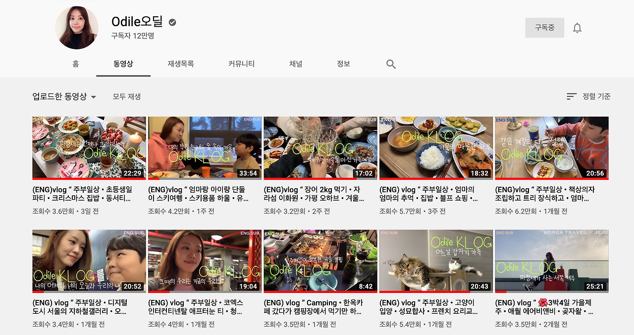 진짜 사랑의 결실인 딸 선화를 키우는 예쁜 이야기들은 아주 럭셔리하게 부자의 삶을 살지 않아도 충분히 타인을 의식하지 않고 주워진 일에 최선을 다하는 예쁜 삶을 살수 있다고 알려준다. 오딜의 채널을 보고 있노라면 내가 과연 나중에 아이를 낳아도 이렇게 현명하게 훈육하고 가정을 꾸릴 수 있을까 비교하고 돌아보게 된다. 남자아이를 키우지만 아내로써 혹은 여자로써의 우아함과 품격은 절대 잃지 않으며 자존감 높은 그녀의 이야기는 썸네일 멘트와 더보기란의 이야기만 보아도 쉽게 확인할 수 있다. 다들 오딜처럼 살고 싶다고 한다. 정말 쉽지 않은 이야기겠지만, 가까이서 함께 일하고 있는 오딜님은 철저히 약속한 것에 대해 노력하고 꾸준히 발전하고 또 주워진 것에 대해 온전한 감사를 누리는 예쁘기만한이 아니라 예쁜데 또 멋진 분이시라 자부한다.
