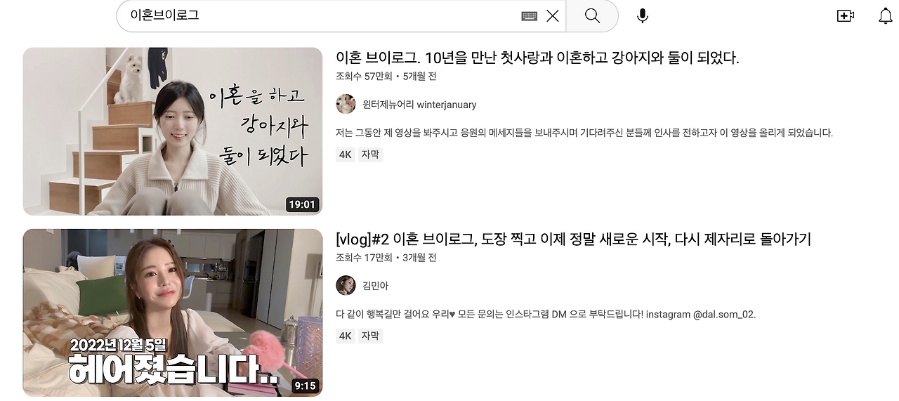 그렇다고해서 무조건적으로 tmi가 넘치는 이혼 브이로그가 해가 되고 인상을 찌푸리게 하고 나쁘다는 것이 아니다. 이혼 이후의 삶을 담담하고, 이혼에 국한되지 않고 인상찌푸리지 않게 본인의 이혼 경험을 살려 세상을 바라보는 눈으로 현생을 해석하는 유쾌한 브이로거도 있다. 이 채널에선 왜 이혼을 했는지에 대한 부분들은 무엇때문이라는 확실한 이유는 알려주지만 전남편이 무슨 말을 했고, 전 시어머니가 이래라 저래라 해서 내가 이랬다는 등의 이야기들은 하지 않는다. 이건 이 유투버의 개인적인 친구일때, 혹은 이 유투버를 더 알아가고 싶은 사람들의 팬미팅이나 단톡방이 있을때 한걸음 더 서로를 알아가려는 의지가 있을때 들어주고 그 사람 입장에서 공감해주는 여유와 마음의 준비를 한 사람들에게 허용되는 특권이자 바른 형태이다.