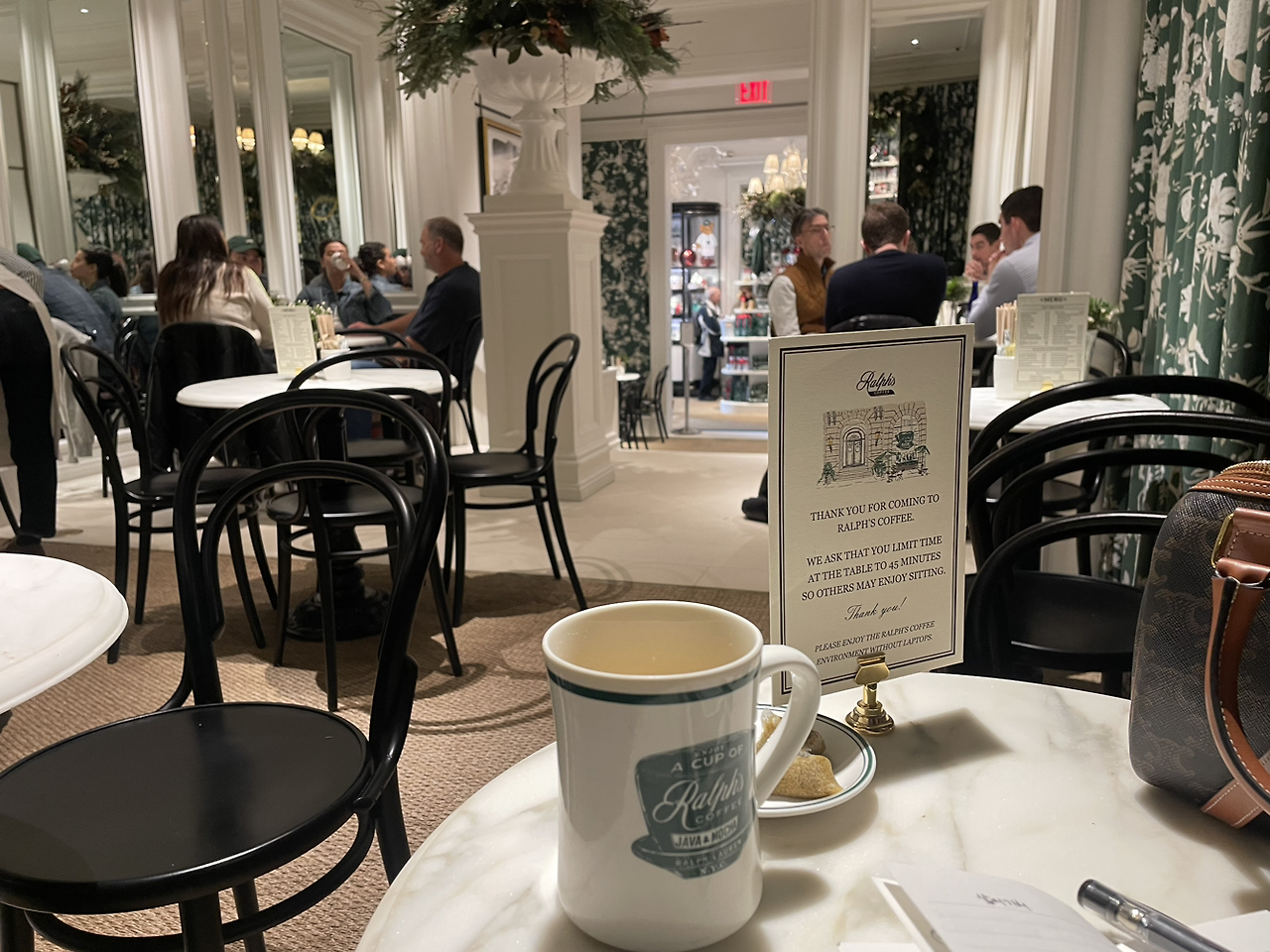 뉴욕 최고의 카페이자 웬만한 호텔 카페 버금갔던 랄프로렌에서 운영하는 랄프카페. 한국인들이 정보에 강한 빼꼼이라서 10테이블 안되는 작은 공간에 3팀이 한국인이었다.