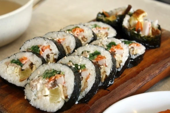 김밥천국의 참치김밥은 그들에게 있어 3천원도 안되는 가격에 양도 많다고 느끼게 했다. 외국인의 눈으로 김밥천국에 가면 너무 많은 메뉴가 있어 뭘 시켜야할지도 모르고 영어표기도 없어서 불안에 떨게 하지만 벽에 붙어있는 그림으로 대충 메뉴를 시켜먹으면 된다는 팁을 알려주었다. 5알에 만원쯤 하는 재패니즈 푸드 섹션에서 파는 "튜나스시"에 비해 양도 맛도 신선함이 배가 되는 느낌이란다. 게다가 깻잎과 참치의 조화는 Really good이라 했다. 하긴 생각해보면 북미지역에서 일본음식에 포함되는 김밥류는 스시라 불리면서 너무 비싸다. 토론토에 있어서 더욱 심했지만 재료는 신선하지 않고 양은 작으며 비싸기까지하다. 그래서 금융쪽 디스트릭트에 가면 늘 캘리포니아롤, 김밥 생김새를 한 스시라 불리는 5알 짜리 음식들이 9불에 팔리는데 없어서 못팔만큼 인기가 많다. 특히나 몸매를 관리하고 싶어하는 여성들에게 똑 떨어지는 수트를 입은채로 점심대용으로 김밥 5알은 무겁지 않은 점심식사인 셈이다.