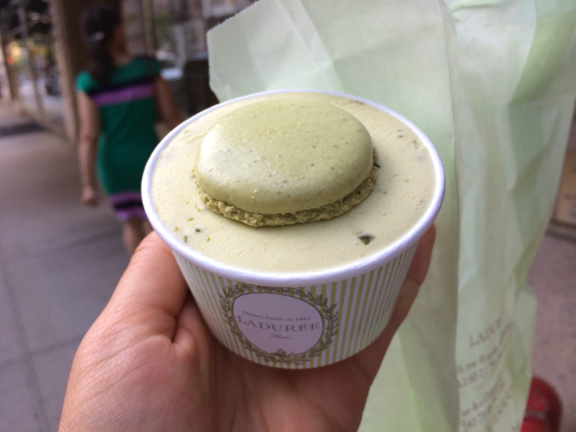 피스타치오 아이스크림이었는데 가게의 디자인만큼 맛은 따라주지 않아서 수고만 더 늘었던 아이스크림이었다. 그냥 이곳의 아이스크림을 굳이 찾아서 먹을만큼의 특별한 맛은 느끼지 못했다. 마카롱을 그리 좋아하지 않는 이유도 있는 듯 하다.
