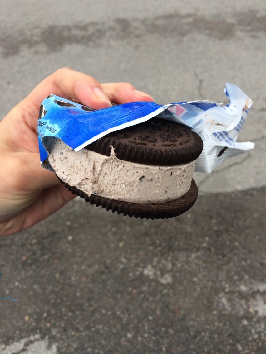 옥빌에서 토론토로 다시 버스를타고 몬트리올로 향하는 여행중에 휴게소에서 화장실을 갔다가 사설 슈퍼에 그냥 화장실을 쓰게 하고 내려주다보니 하나 사먹게 된 아이스크림이었다. 어릴 적 이가 까매지도록 오레오 과자를 좋아했는데 아이스크림으로 먹다니 너무 신기했다. 신기함은 남았지만 모험이었음을 알게했다. 아그작거리는 오레오의 씹는 맛이 부족해 아쉬웠던 아이스크림이었다.