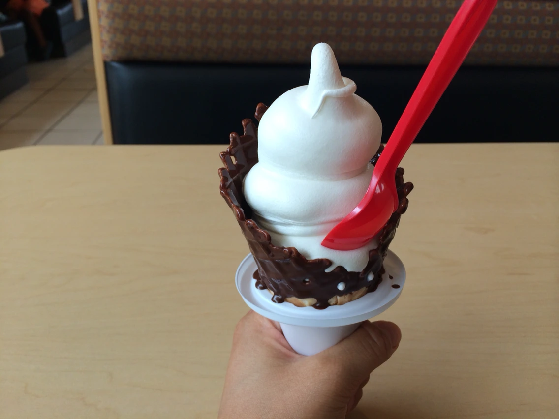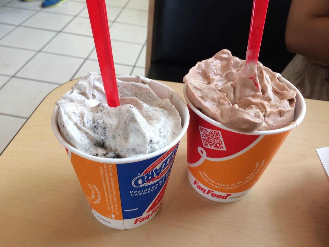 미국음식중에 뭐가 제일 그리워? 혹은 미국에 있는 음식들 중에 어떤 걸 한국에 가지고 왔음 좋겠어?라고 물으면 나는 하나같이 유제품류를 이야기한다. 단연코 DQ(데일리퀸)아이스크림이 그렇고 GREEK GODS YOUGURT라고 WHOLEFOODSMARKET이나 다른 식료품가게에도 유통되는 요거트인데 두개의 공통점이 유제품이 하나같이 "꾸덕"하다. 친구 생일파티를 2박 3일동안 하고 기숙사로 돌아오는 길에 휴게소 같은 곳에 잠시 들려 난생처음 DQ를 맛보았다. 진짜 허겁지겁 맛있게 먹었는데 우연히 그 시골의 DQ사장님이었던 한 할아버지와의 짧은 대화에서 내가 캐나다에 사는 1년동안 처음 먹어보는 아이스크림이라는 대답을 하자 굉장히 놀라하셨다. 물론 이곳에 데려간 내 캐나다 친구도 어떻게 아직 이 아이스크림을 먹어보지 않았냐며 한탄을 했다. 아이스크림 케이크도 팔고 맥도날드처럼 감자튀김같은 패스트푸드도 함께 판다. 체인점인데 4불이 넘는 아이스크림이 충분히 가치있게 느껴지는 곳이 DQ다. 와플콘도 맛있었지만 아이스크림이 녹을까봐 저렇게 하얀깔대기를 끼워주는게 더 감동이었다. 맥플러리처럼 오레오를 섞은 것도 이 가게의 대표메뉴고 그만큼 맛있다. 하지만 소프트 아이스크림 본연의 맛 그대로를 제대로 살린 아이스크림을 먹을 수 있는 곳이 DQ고 춥디 추운 캐나다에서 (1년중 9개월이 겨울인 나라에서) 아이스크림가게로 명맥을 유지할 수 있는 건 독보적인 맛의 비결아닐까.