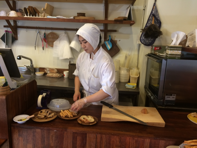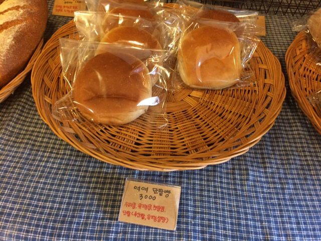 이곳의 단팥빵이 별미다. 가격은 3000원이다. 서울도 워낙 빵값이 올라서 웬만큼 유명한 서울의 빵집 가격 생각하면 이 집의 가격이 부담스러운 정도는 아니다. 하지만 이곳의 단팥빵은 직접 팥을 기른 것을 사용하기 때문에 국산 팥이라 믿고 먹을 수 있다. 빵 자체가 자극적이지 않고 디저트보단 주식용 빵을 많이 접할 수 있다. 스콘도 맛있고 언제 가나 친절한 직원과 시식용 빵을 가득 썰어주는 인심이 있는 곳이지만 시간을 잘 못 맞춰가면 빵이 다 떨어져 원하는 빵을 못 먹을 때가 많다. 자극적이지 않아 좋고 단팥빵은 어른들에게 선물용으로 정말 딱이다. 3000원이라 비싸긴 하지만 직접 재배한 팥에 상업적인 유기농 멘트가 아니라 진짜 마음을 담은 유기농으로 담백함을 함께 구워냈다. 요즘 빵 가격들이 어마 무시한데 좋은 재료, 건강하게 먹는 값이라 생각하면 이 집도 지방 빵집치곤 비싸지만 믿고 먹는 가격으로 날 위한 투자라 생각하고 먹는다. 크로와상 비주얼만 봐도 얼마나 정석대로 구워내는지 알 수 있다.