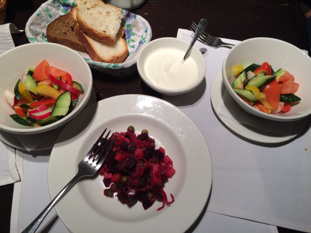 외국 여행을 가서도 느끼하고 짠 음식을 먹을 땐 늘 샐러드는 필수다. 암스테르담 여행을 가서 스테이크 하나를 시키고 샐러드를 시키고 감자튀김을 시키면 둘이서 푸짐하고 맛있게 한끼를 먹을 수 있다길래 그렇게 시켜봤는데 굉장히 라이트한 샐러드라 상대적으로 굉장히 무거운 음식인 스테이크와 감자튀김을 먹으면서 이를 중화시켜주는 작용을 했다. 샐러드는 크게 힘주고 만들지 않아도 기본 재료가 신선하고 주인이 음식에 대해 장난친단 생각을 하지 않고 정직하게 만들면 기본 이상을 하는 신뢰의 음식이란 생각을 한다. 오른쪽에 사진은 러시아 상트페테르부르크에서 현지인들이 자주 찾는다는 맛집의 샐러드인데 그릭요거트에 달콤함을 뺀 드레싱에 샐러드를 먹는데 맛없는 기내식보다 더 맛이 없었다. 러시아 전통음식이라고 빨간 무도 같이 들어가는데 늘 익숙치 않은 문화체험은 즐겁기도 하지만 한 끼를 온전히 망쳐버렸을때 오는 실망감도 뒷따르곤 한다.