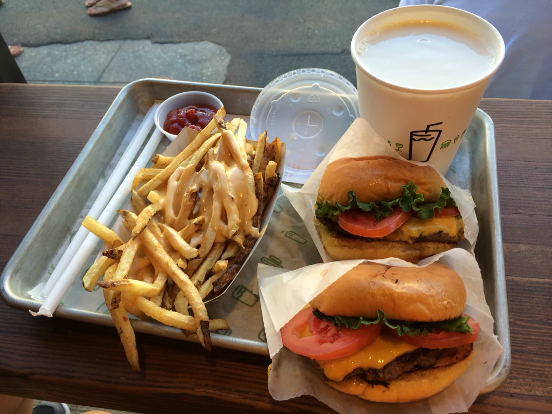 나의 쉑쉑, 너의 쉑쉑! 뉴욕의 명물 쉑쉑버거에 프라이가 오버였다. 유학생 카더라 통신에 의하면 구불구불하게 잘라놓은 진짜 오리지널 쉑쉑 감자튀김이 저렇게 길쭉하게 바뀐 이유가 누구 한사람의 컴플레인 때문이라고 하는데 영 판단미스라 생각한다. 쉑쉑은 자고로 구불구불한 감자튀김이 제 맛이다. 저기 위에 올려진 치즈에 케쳡 듬뿍 찍어먹으면 "지져스 크라이스트" 햄버거는 쉑쉑이 늘 옳고 인앤아웃은 가격대비 맛이 굉장히 만족스럽다. 라스베가스에서 먹지 못하고 샌프란가서 찾아먹은 인앤아웃은 배가 불러서인지 그리 인상깊은 맛은 아니었다. 지난번에 먹었을때는 진짜 끝장나게 맛있었는데 말이다. 둘다 맛있는 버거임은 확실하지만 배부를때도 맛있는 버거는 쉑쉑이었다. 쉑쉑은 정말이지 감자튀김을 다시 기존의 것으로 돌려놓아야만한다. 두바이에도 쉑쉑이 있고 러시아에도 쉑쉑이 있는데 누군가 말로는 미국 동부 말고 쉑쉑이 퍼질 수 없는 이유가 재료의 신선함때문이라는데 두바이, 러시아에 진출한 쉑쉑은 의리로 한국에 들어와도 후회하지 않게 대박날 것을 확신할 수 있다. 매년 열린다는 플래그쉽 스토어에 매번 놓친다. 한국에서 쉑쉑을 먹는 그 날을 학수고대한다.