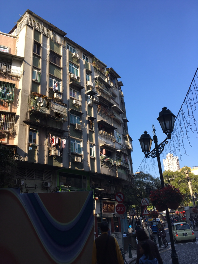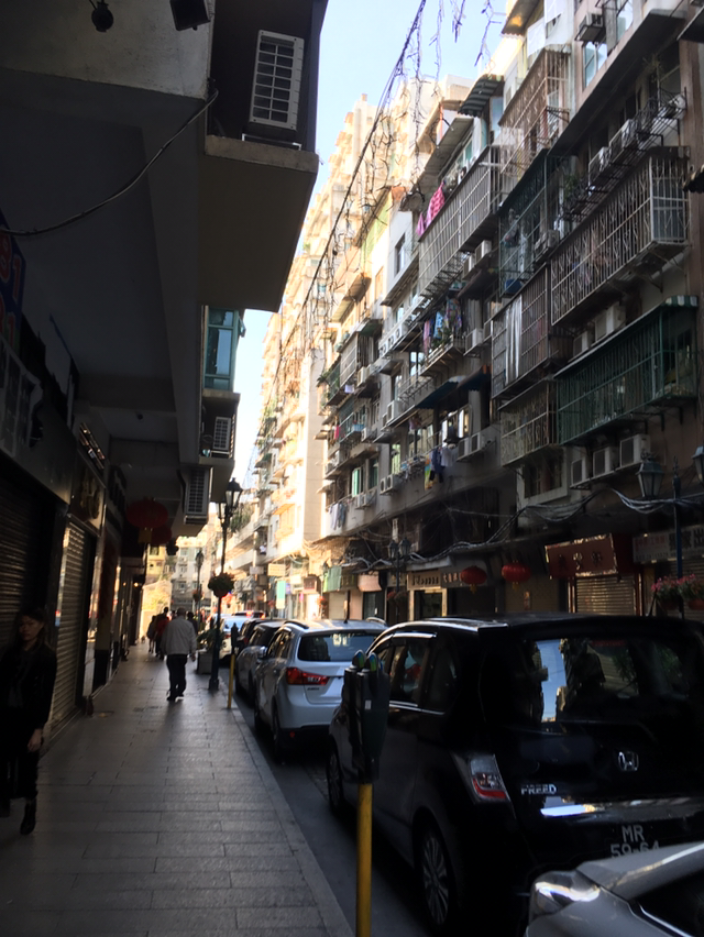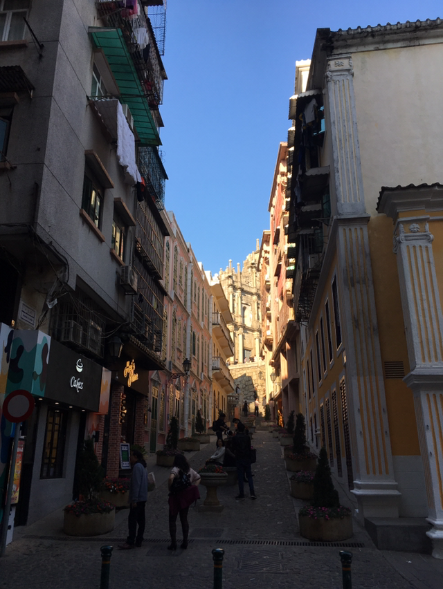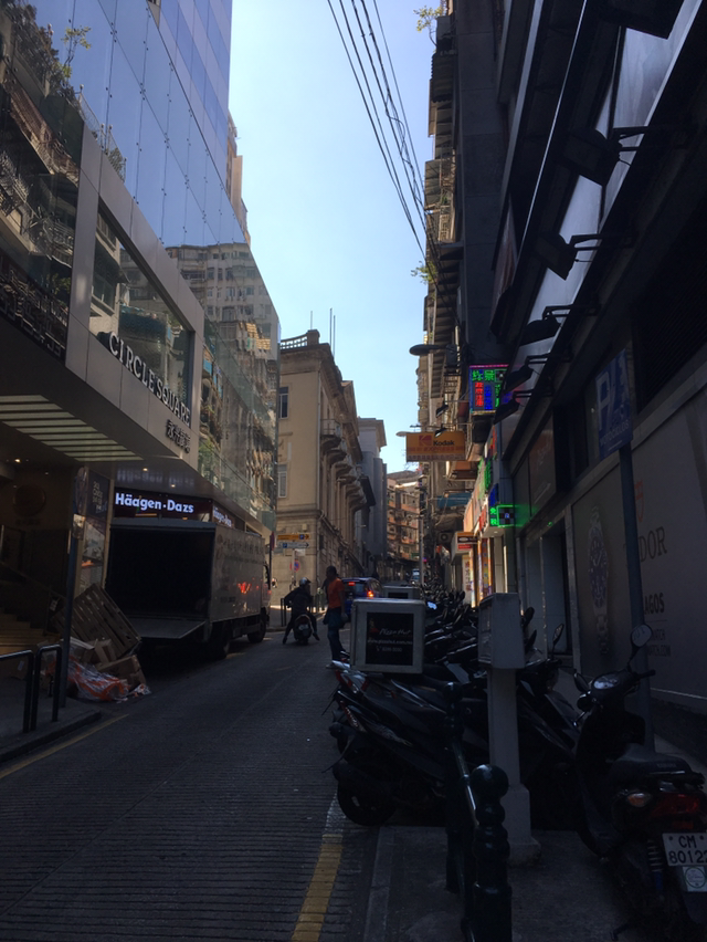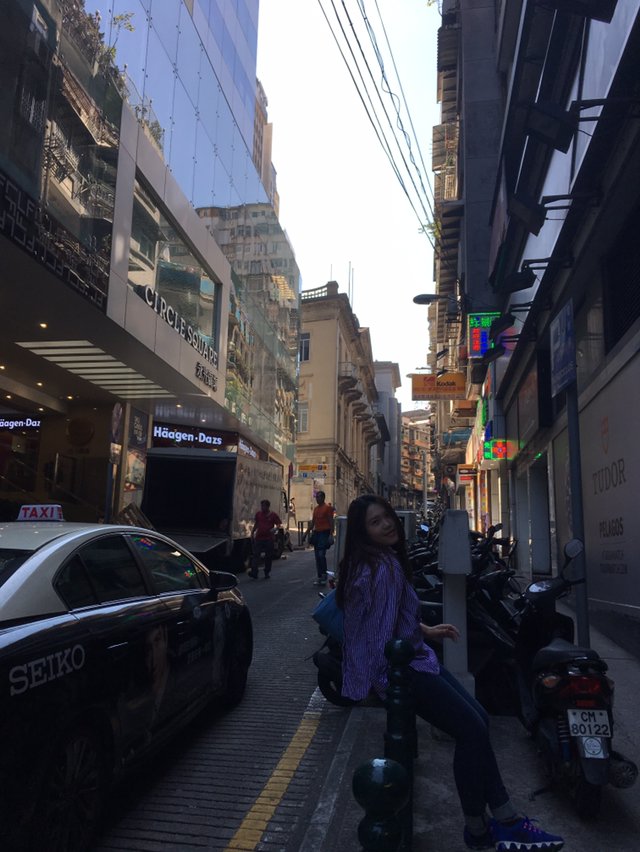 마카오의 중심인 세나도 광장과 그 뒤에 있는 성바울 성당만 찾아 사진만 찍고 밥이나 먹고 베네치안 호텔이나 돌아다니는 계획이 전부였는데 윈호텔에서 세나도 광장까지 걸어가는 길이 생각보다 멀게 느껴져 눈앞에 보이는 홍콩스러운 풍경에 친구에게 사진을 부탁했다.