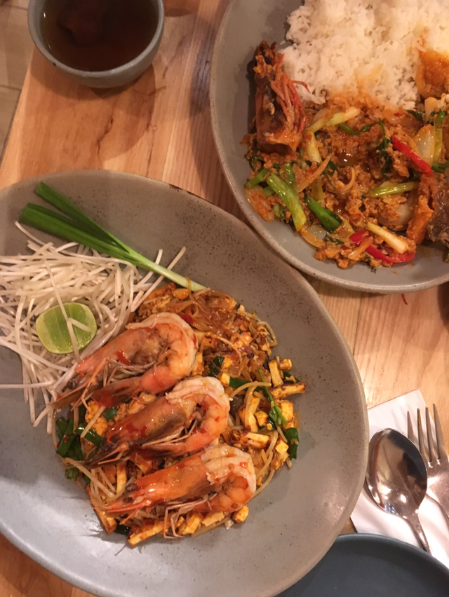 호텔 앞 엠콰티에 몰에서 할인 카드를 만들고 직원분의 추천을 받아 푸팟퐁커리와 팟타이를 시켰다. 푸팟퐁커리는 예상이 가능한 맛이었고 팟타이도 여전히 맛있었다. 하지만 가격대가 좀 있고 고급스러움은 있는데 반해 맛과 서비스의 프로페셔널함은 조금 그 가치를 덜하는 느낌이 들었다. 다음날 시암센터에 지난번에 찾았던 팟타이/볶음밥가게가 훨씬 맛있었다. 식후에 땡모반은 선택이 아닌 필수다. 호텔이나 식당등 비싸야 3000원쯤 하는 땡모반을 눈에 보일때마다 사마셔도 갔다오고 나면 늘 아쉽다. 땡모반때문에 다른 식후 후식은 호텔에서 말고 자발적으로 사먹을 겨를이 없었다.