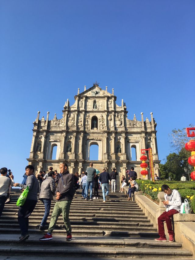 드디어 마카오의 관광객은 여기 다 모아 놓은 것 같은 엄청난 관광객들을 발견에 한번 놀랐고 성바울 성당의 아우라는 포근한 마카오 겨울 날씨에 점심을 먹고 나른해졌기에 햇빛을 충분히 받으며 멍하니 사람 구경을 했다. 사실 여기서 사진 몇 개를 찍어보려다가 자신들의 사진을 찍어달라는 요청을 더 많이 받고 그게 지쳐 그냥 계단 끝에 주저 앉아 멍하니 졸린 눈만 비볐다. 전 날 회사를 출근하고 정시에 마쳐 여행준비를 좀 하다가 혹시나 빠뜨린 정보가 있을까해서 인터넷 서핑을 좀 하다보니 두시간도 눈을 붙이지 못하고 공항에 세시간전에 넉넉히 도착해야해서 이제야 졸음과 피곤이 겹쳐오는 것 같았다.