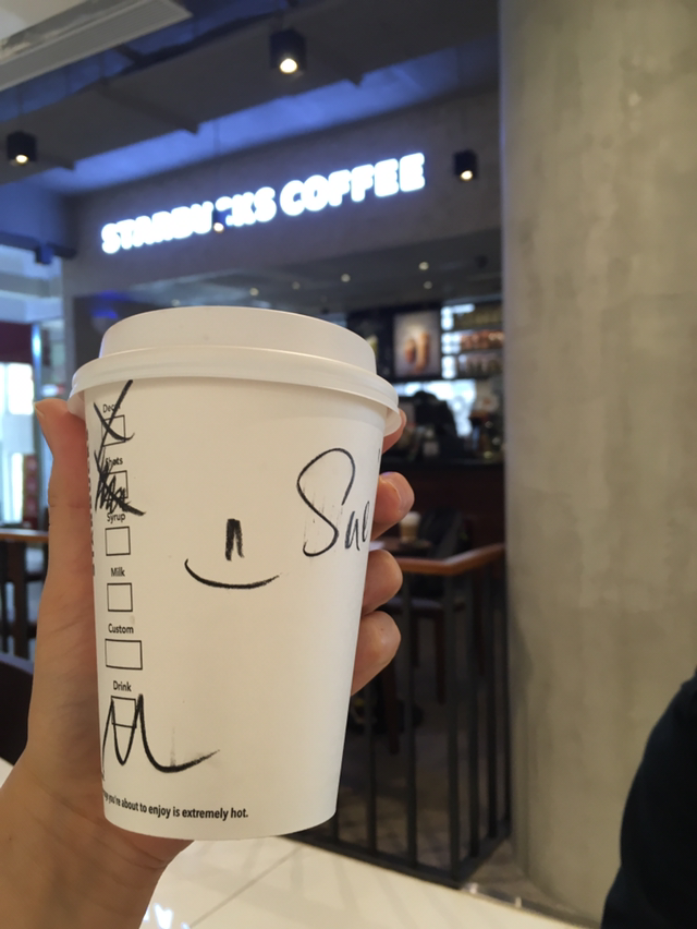 윙치케이라는 맛집이 있다고 해서 찾아가려고 했는데 우선 세나도 광장을 따라 눈에 보이는 스타벅스부터 들러 돈을 뽑을지 카드계산이 가능하면 그냥 다닐지 전반적인 오늘 일정과 루트에 대해 친구와 함께 논의하기위해 와이파이가 있을 스타벅스에 들렀다. 아날로그식으로 적어주는 이름과 웃음표가 여행지라 더욱 정겹게 다가왔다.