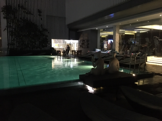 라운지에서 영상통화를 기다리다가 화면에 비치는 라운지의 천장이 너무 예뻐서 얼른 스크린캡쳐를 했다. 조식을 먹고 배 뻥뻥 두드리며 수영복을 입고 수영장에 갔는데 외국이라 상관없을 줄 알았는데 하나같이 한국 분들이 누워서 쉬고 계셔서 눈치가 보여 샤워 가운을 벗지 못하고 발에 물만 담그고 왔다.