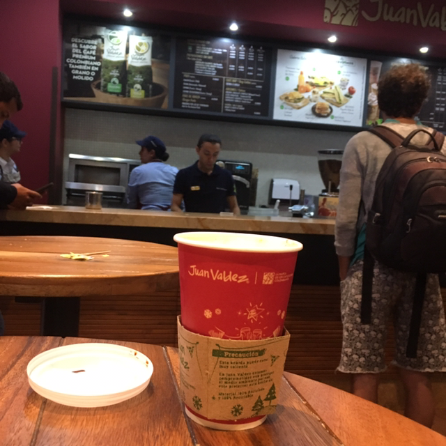 새벽 6시에 내린 콜롬비아 공항에서는 커피의 나라답게 Juan Valdez라는 카페가 남미 사람들의 아침을 깨우는 모닝커피를 책임지고 있었다. 너무 정신이 없어서 이곳의 요구르트만 하나 사다가 보았는데 스타벅스와는 비교가 되지 않을 만큼 문전성시를 이루는 이곳의 커피 웨이팅 줄에 나도 같이 서보았다. 운이 좋게도 디카페인 커피를 마실 수 있었고 내 카페인, 디카페인 인생 통틀어 최고의 커피를 이곳에서 맛보았다. 커피가 이리도 진하고 맛있을 수 있다니 말도 안 되는 스케줄의 행군 속에서 세상의 피로가 확 풀리는 것을 느꼈다. 진짜 자주 먹을 순 없지만 내 인생에서 태어나 진짜 제대로 된 커피를 마셔봤다는 감사함이 들었다.