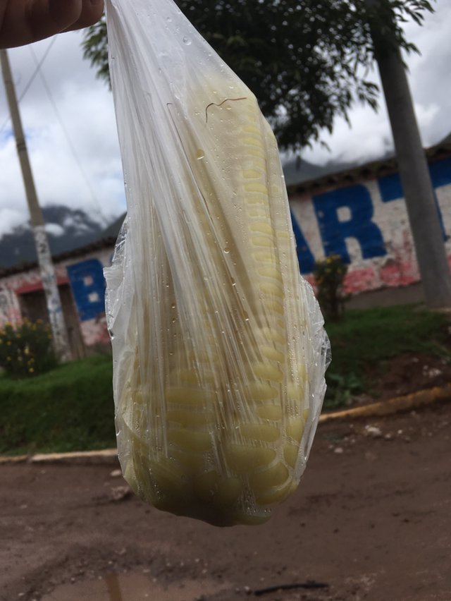 하지만 너무 숨이 차고 정신이 하나도 없어서 걷는 것도 힘들었다. 아무 생각 없이 걷다가 아저씨가 연계된 작물 가게에 들어갔는데 내 발 밑에 강아지가 있는 줄 모르고 다른 곳을 보고 밟다가 강아지를 발로 스쳤다. 강아지도 놀라고 쪼리를 신은 나도 너무 놀라 하얗게 얼굴이 질렸다. 그리고 남미의 옥수수가 그렇게 비주얼적으로 인상적이길래 하나 사려고 했더니 아이고 아줌마들이 득달같이 차로 달려들어서 깜짝 놀랐다. 거스름돈이 없어 마음씨 좋은 아저씨가 2 솔주고 대신 사주셨다. 한국처럼 달콤하게 만드는 제품을 하나도 넣지 않아서인지 알맹이는 크고 튼실했지만 고소하거나 달콤한 맛은 없었다. 엄마와 함께 반을 겨우 먹고 강냉이 먹다가 강냉이 털릴 것 같은 질김에 먹는 것을 포기했다.