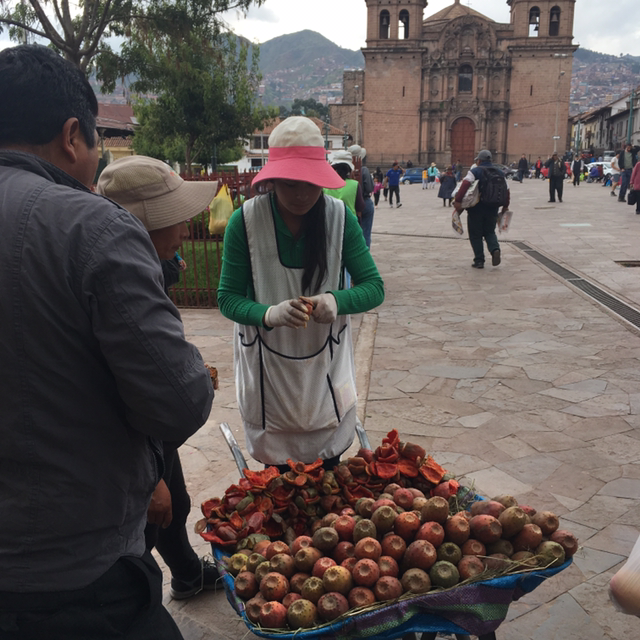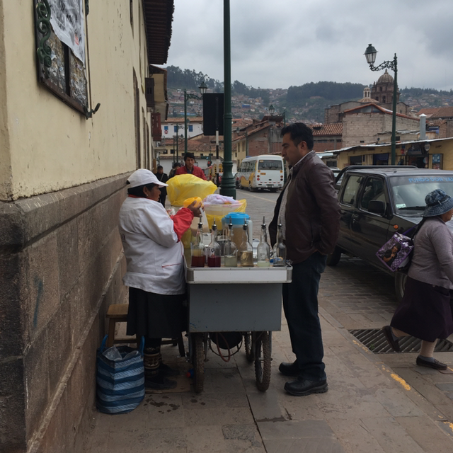 오전에 엄마와 가볍게 쿠스코 산책을 하고 다시 돌아와 준비를 한 뒤 쿠스코 시내에 있는 큰 시장이 있다고 하여 그곳을 걸어갔다. 가는 길에 추적추적 비가 내리기 시작하여 비를 피하기 위해 계속 시장을 돌았다. 동네 개들을 줄 없이 마음껏 풀어놓아서 가끔 개를 보고 놀라기도 했지만 전반적으로 이 동네 개들은 사람을 무서워하지도 않고 짖는 것을 한 번도 본 적이 없을 만큼 이곳 사람들만큼이나 평화롭고 자유분방했다.