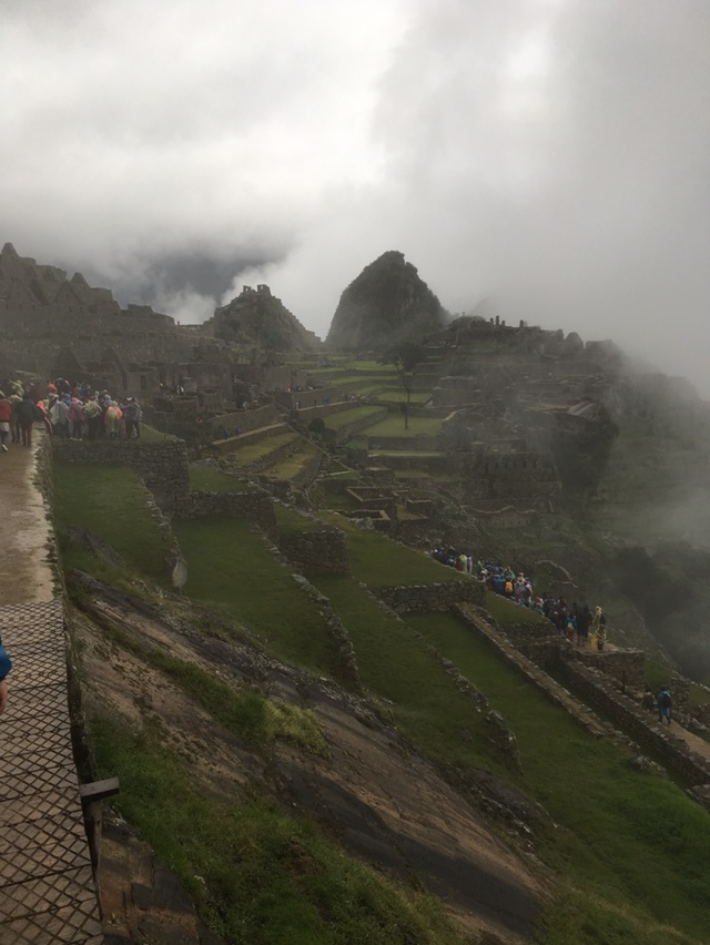 정말 말도 안 되게 위험한 길을 굽이 굽이 올라 마추픽추에 어렵지 않게 다다를 수 있었다. 그리고 새벽이라 그런지 비도 추적추적 내리고 안개도 가득 끼어서 눈앞에 마추픽추가 거의 보이지 않았다.