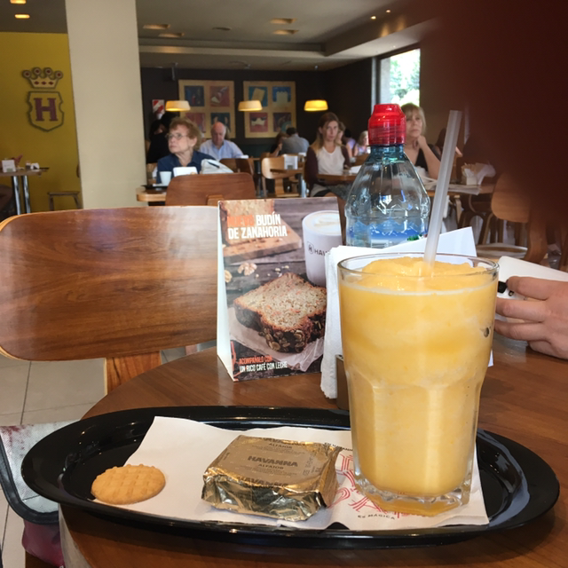 우리나라로 치면 왕년에 잘나가던 카페베네쯤 될까? 부에노스 아이레스 곳곳에서 마주할 수 있었던 Havanna 카페가 궁금하던 찰나 이과수폭포로 가는 비행기 시간이 많이 남아 있기에 남미스러운 여유를 즐겨보기로 했다. 딱히 이곳에 디카페인 커피를 팔지 않아 과일을 갈아넣은 신메뉴를 시켰는데 남미스러운 가득한 양에 한번 기겁을 하고 음료를 시키면 함께 곁들어 주는 와플 모양의 과자도 받았다. 사람들은 이곳을 자주 익숙하게 찾는듯 보였다. 우리는 카페를 찾는 대부분의 이유가 누군가와 만나고 이야기하기 위해서, 혹은 공부를 하기 위해서라면 이곳은 카페 자체의 분위기와 맛을 즐기려는 사람들이 대부분이었다. 하나같이 삶에는 여유가 뿜어져 나왔다. 이는 경제적 여유의 유무를 넘어 삶의 속도를 자신이 조절해나가는 주체성으로 부터 나오는 것이 분명해보였다.
