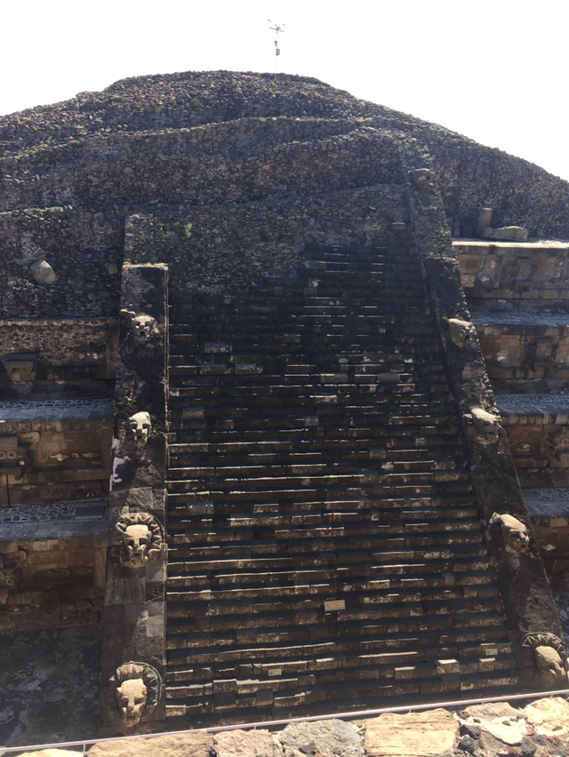 굉장히 복잡하고 크고 넓은 터미널 가장 끝에 우리가 가려는 테오티우아칸행 버스가 있었다. 타코를 사먹으려고 했는데 줄이 길어 오렌지 주스만 하나 겨우 들고 버스에 탔다. 그게 화근이었다. 그 전날도 과자 조금에 햄버거 반개를 먹은게 전부였고 다음날 오후가 되도록 먹은 음식이 없었는데 막상 도착했더니 배가 고프고 지쳐서 뜨거운 태양 아래서 걷는 것조차 힘이 빠졌다. 엄마랑 눈에 보이는 피라미드 하나만 올라갔다가 메인 피라미드에서는 아래에서 사진만 찍고 내려오기로 했다. 겉으로 보기엔 간격이 좁아보여도 내려올때 한 계단 한계단이 어찌나 조심스러운지 미끄러지면 얼굴 갈리는걸로 절대 끝나지 않을 경사였다.