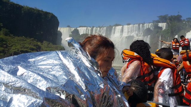 그렇게 미리 준비된 구명조끼를 입고 보트를 타고 한참을 가다보면 세계 3대 폭포인 이과수 폭포가 내 눈앞에 짠하고 펼쳐지는데 그 물살이 너무 쎄서 눈을 뜨는것도 힘들었다. 여기서 막상 너무 귀찮기도 했고 햇볕도 강하고 기계에 물이 들어갈까봐 핸드폰을 꺼내는게 너무 두려웠다. 남들 안하는 우비를 이중으로 하는 바람에 나는 거의 폭포 한 가운데에서도 심하게 젖진 않았다. 아무리 안젖는다고 하더라도 의자 사이로 들어오는 물에 레깅스가 조금 젖긴 했지만 금방 마르는 재질에 햇볕도 좋아 그리 거슬리진 않았다. 정말 나이아가라 폭포를 여러번 봤어도 이과수폭포가 주는 화려함은 왜 Poor Niagara라는 이야기를 했는지 그 말이 절로 나왔다. 수려하게 아름다운 폭포가 한눈에 들어오는데 진짜 세상을 다 가진듯 엄청난 광경이긴 했다. 마음같아선 한시간이고 보트 위에서 한참을 바라보고 싶었다. 자연이 빚어낸 폭포가 주는 감동은 세상 어떤 절경보다 특별한 가치를 지닌 것 같다.