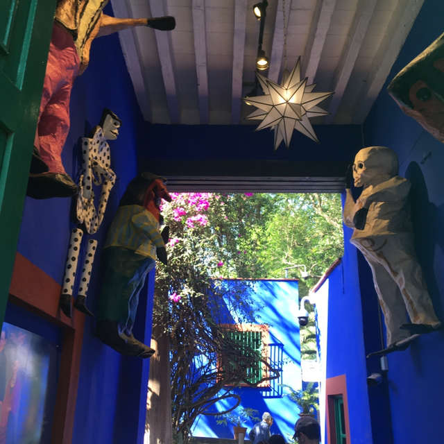 그녀의 작품을 사진으로 담기 위해서는 입장료의 반액에 가까운 금액을 주고 사진을 찍을 수 있는 표를 사야했다. 눈으로 보는 것만으로도 충분해서 딱히 찍진 않았다. 엄마에게 프리다칼로의 삶에 대해서 얕은 지식이었지만 열심히 설명해주고 있던 찰나 내가 한국어를 하고 있는 것을 보고 어떤 외국인 아줌마가 자신의 아이와 함께 나에게 다가와서는 "안녕하세요!"라고 인사했다. 한국어를 배웠던 적이 있었다고 했다. 신기하기도 하고, 내가 사용하는 언어와 문화에 대한 관심을 이 먼 이국땅에서 마주한 외국인이 알고 있다는 사실에 뭉클했다. 불행한 프리다 칼로의 삶이라 치중하기에 그녀는 그림을 그리는 순간만큼은 너무 행복했었던 것 같다. 그리고 분명한 것은 그녀는 나름의 유복한 집안에서 살아왔다는 것이다. 그녀가 작품을 그렸던 공간, 침실, 몸이 불편한 그녀가 늘 바라본 벽과 장식품들을 바라보고있노라면 화려한 색감만큼이나 자신을 치장하기 좋아하는 그녀에게 있어 얼마나 갑갑하고 답답한 삶이 었을까 헤아려 보았다.