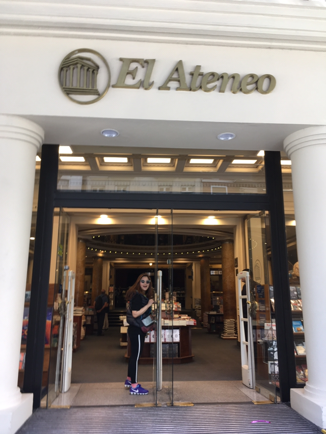 El Ateneo는 어딜가나 포토스팟이 되는 곳이었다. 나는 뉴욕에 갈때마다 strand bookstore를 습관처럼 들리곤 한다. 그리고 그곳에서 인테리어 소품으로 사올만한 브랜드 철학을 담은 책을 사오거나 이곳의 상징이 되어 한국에서도 많은 직구를 하고 있는 에코백을 사와서 선물하기도 하고 내가 이곳을 추억하면서 자주 쓰기도 한다. 그리고 이곳엔 서점의 브랜드 로고뿐 아니라 책을 읽는 사람이나, 책에 대한 철학을 담은 글귀들을 예쁘게 디자인해서 갖다 놓는데 El Ateneo는 이곳을 찾는 사람들에 비해 직접 책을 구매해가는 사람들이 현저히 작았다. 서점을 관리하는데 드는 인력은 곳곳에 아주 많이 배치되어있는데 이를 관광수입으로 유지하기 위해서 볼펜 몇개를 팔고 있었지 관광객들이 굳이 여기서 사가고 싶을만한 기념품이 전혀 보이지 않아서 안타까웠다. 정말 이곳에서 나는 에코백을 팔자고 이야기하고 싶었고, 에코백을 팔게 되면 지금 당장이라도 사가고 싶었다. 역시 미국의 선진화된 마케팅을 탓해야하나 이곳이 상업적인 공간이 되지 않으면 더이상 나라에서 funding을 하지 않는 한 이 아름다운 공간을 보존할 수 없다는 위기감이 몰아치기도 했다.