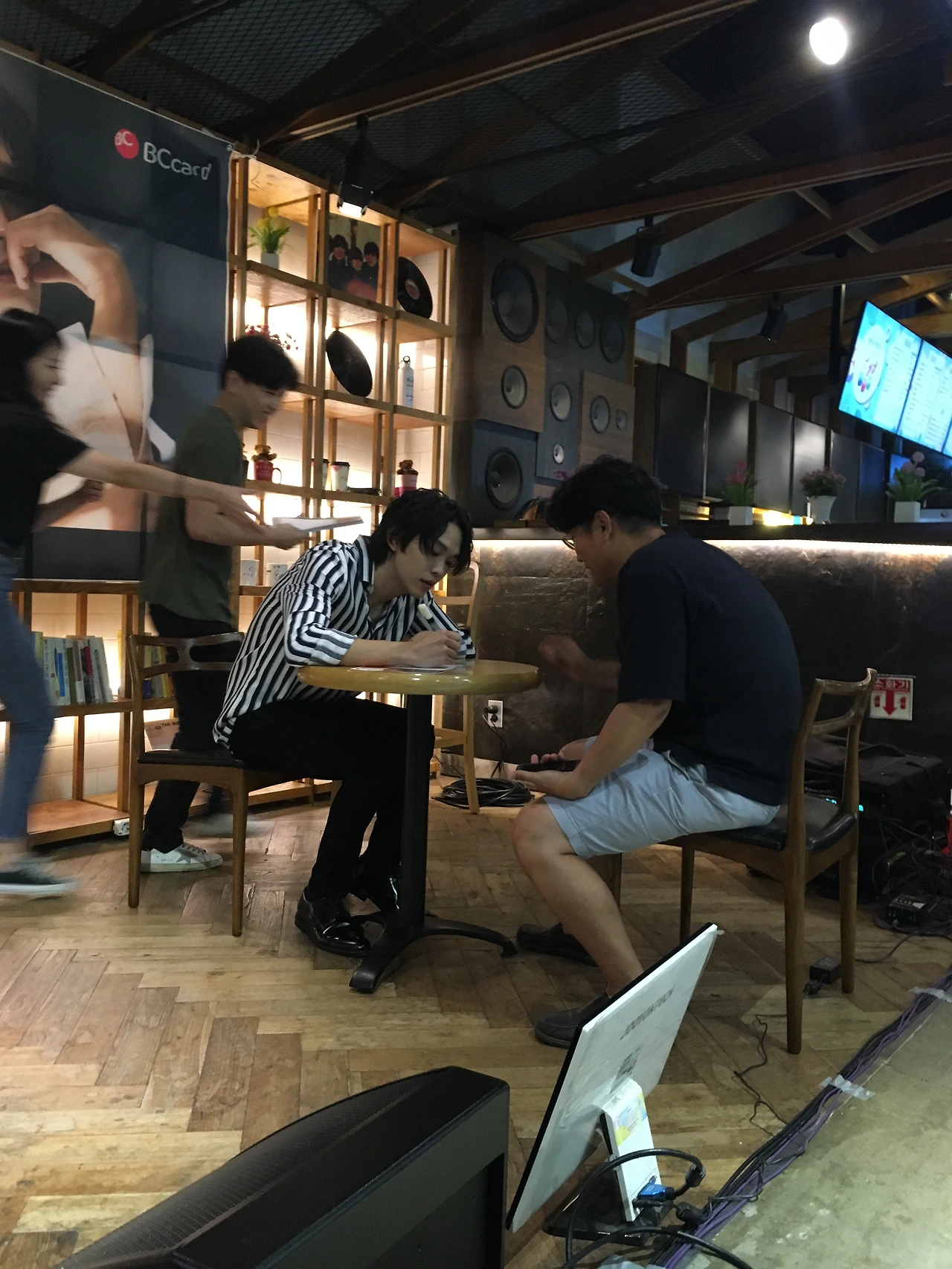 그리고 그 꿈만 같은 보상은 현실의 세계로 나를 데려오는데 긴 시간이 필요하지 않았다. 공연 시작 직전 오늘 밤 자정까지 처리해야 하는 일에 도저히 지금 연락이 안 되면 펑크가 나서 그 뒷수습이 더 막막했다. 결국 그 좋은 1번 자리는 나보다 더 운이 좋은 누군가가 대신 앉았다. 그 대신 무대 옆 테이블에서 노트북을 펼쳐 들고선 열심히 피드백을 주고있었다. 고스란히 케빈 오의 음악은 귀로만 듣고 그 귀한 시간 내 눈은 컴퓨터와 핸드폰을 붙잡고 있었다. 행사 담당자가 취재하러 온 미디어 관계자냐고 물었다. (하하하하) 그래도 그 와중에 감사했던 점은 케빈 오가 잠깐잠깐 쉬는 시간 대기실이 바로 내가 앉았던 테이블 앞에 있어 무대 뒤의 모습을 보며 실컷 함박웃음을 터뜨리며 엔돌핀 충전을 했다. 그의 어수룩한 한국말과 대비되는 완벽한 분위기 그리고 멋을 빼고 불러 더 멋있게 느껴지는 노래에 그날 밤은 혼자 설레서 자정까지 일을 해야 했지만 꿈만 같았던 금요일 밤이었다. 역시 좋은 일과 슬픈 일은 늘 똑같은 정량으로 질량 보존의 법칙이라는 사실을 증명이라고 하는 듯 그렇게 지겨운 내외부 직장 스트레스를 케빈 오와 함께하는 황홀한 60분으로 녹일 수 있었다.