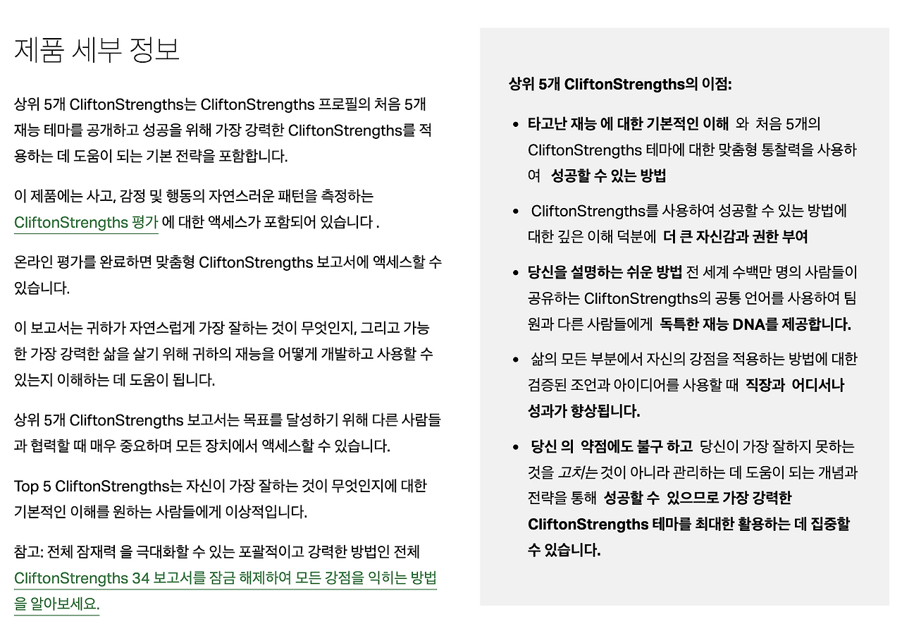 Gallup Organization에서 수년 동안 실시해 온 조사에 따르면 자신의 강점과 행동을 이해하는 사람이 가장 유능한 사람입니다. 이러한 사람들은 자신의 일상생활, 경력, 가족의 필요를 월등히 충족시킬 전략을 가장 잘 개발할 수 있습니다. 습득한 지식과 기술을 검토하면 자신의 능력을 기본적인 수준에서 이해할 수 있지만, 자신의 타고난 소질을 인지하고 이해하면 꾸준한 성공을 뒷받침하는 핵심적인 이유를 정확히 파악할 수 있게 될 것입니다.