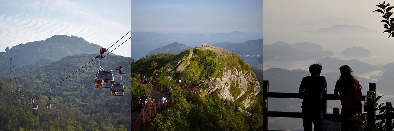 - 미륵산(461m)은 걸어서 오르면 한 시간이 조금 더 걸리는데, 굳이 발품을 팔지 않아도 오를 수 있다. 케이블카가 운행된다. 아침 9시30분부터 오후 6시까지 이용할 수 있다. (왕복요금 10,000원)