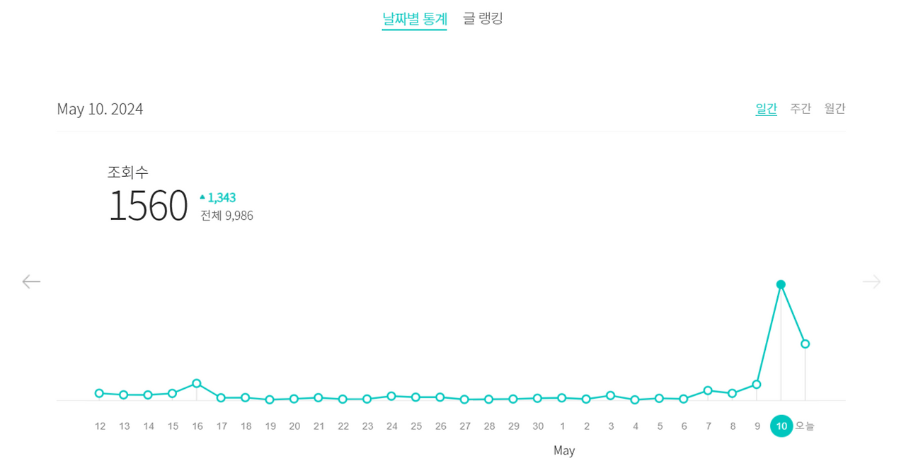 목요일 밤 자기 전에 무심코 통계를 확인했어요. 이상하다? 낯익은 숫자가 아니었어요. 다음날에는 한 번도 경험한 적 없는 조회수를 맞닥뜨렸어요. 다음 메인에 올랐나? 모바일, PC버전 이 잡듯이 샅샅이 살펴봤지만 어디에도 제 글은 없었어요. 그럼 그렇지.