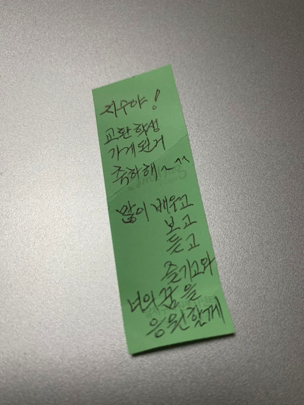 -항상 맏이라고 챙겨주시는 큰 고모가 보낸 애정 듬뿍 담긴 쪽지. 많이 배우고, 보고, 듣고, 즐기고 와야겠다!