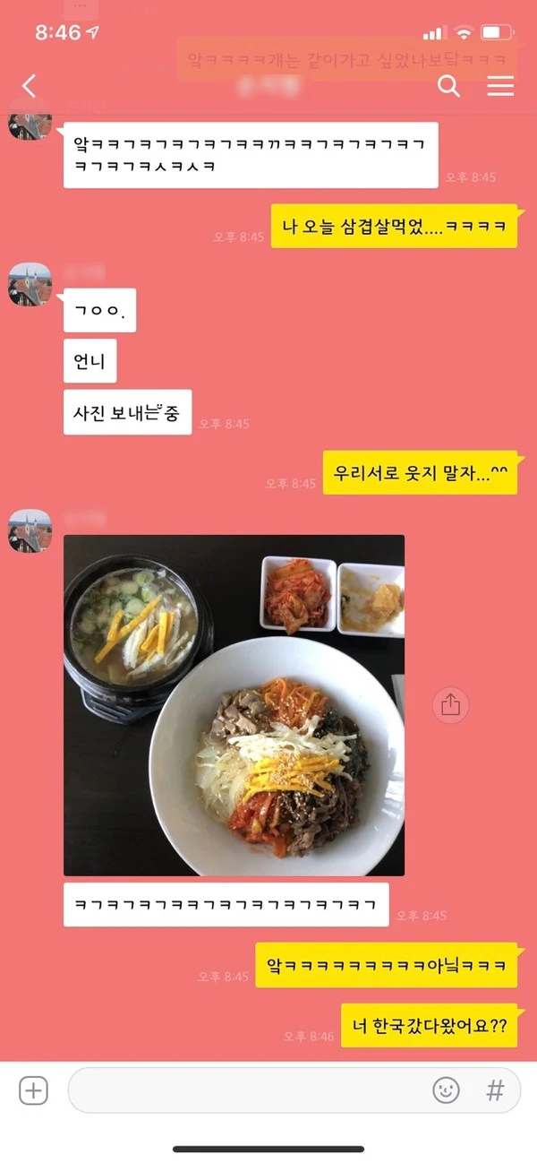 그동안 감성 넘치는 사진들만 올리다가 카카오톡 대화 사진을 올려서 살짝 멈칫했지만 너무 웃겨서 공유하고자 한다. 헝가리의 유명한 온천에 가기 전 돼지고기 구워서 실컷 먹었다고 후배에게 후회 섞인 어조로 문자를 남겼더니 얘는 더한 걸 먹었다. 크로아티아에 와서 제일 많이 외식한 음식이 뭐냐고 하면 이 친구는 아마 한식당에서 먹은걸 꼽을 것 같다. 나는 수영복 입어야 하는데 전날까지 고기 구워 먹고 후배는 비빔밥에 갈비탕까지. 최후의 2인 답다.