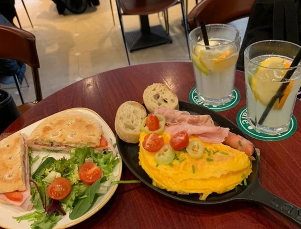 어딜 가든 오믈렛과 샌드위치는 항상 옳은 것 같다. 진심 맛있어서 하나도 안 남기고 다 먹고 왔다. 아침이라서 조금은 차분하지만 하루를 시작하기 위해 커피와 브런치를 먹으며 힘을 얻는 듯한 활기참까지. 크로아티아와는 조금 다른 아침 풍경에 입으로는 샌드위치를 씹으면서도 눈을 이리저리 굴려가며 주변을 구경했다. 관광 온 나이 든 부부, 아이 셋과 부부까지 아침을 먹으러 온 가족, 출근 전 테크 아웃으로 커피를 사기 위해 들은 직장인 등 수많은 사람들이 각자의 사연을 가지고 이곳에 모여있었다. 그중에 제일 눈에 띄는 건 사실 동양인 여자 둘인 우리.