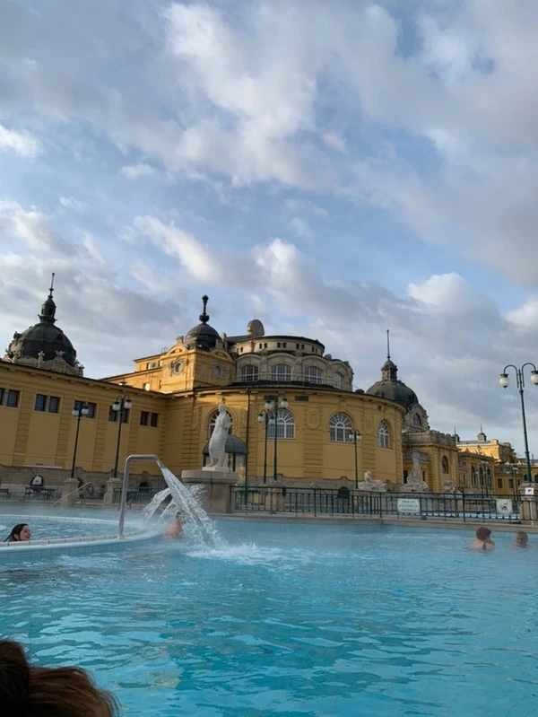 드디어 왔다. 이곳은 부다페스트 중심가에서 멀리 떨어지지 않은 곳에 위치한 “세체니 온천”. 온천이라는 이름이 붙은 곳이지만 수영징처럼 수영복을 입고 입장해서 물에 들어갈 수 있는 곳으로 남녀 혼탕이다. 여기에 오기 위해 자그레브에서도 살만한 수영복 찾는다고 난리부르스였는데 오길 잘한 것 같다. 아침 일찍 오면 조금 더 저렴하고 물이 깨끗하다는 한국인들의 후기를 보고 우리도 새벽 댓바람부터 준비를 했다. 피곤하기 때문에 세수와 양치만 하고 화장은 대충 하고 6시가 조금 넘는 시간에 집을 나섰다. 이왕 왔는데 인증샷을 남겨야겠다는 생각에 지원이와 사진을 몇 장 찍고 추워서 금방 물속으로 들어왔다. 온천은 생각보다 뜨겁지 않았지만 오랜만에 탕에 들어와서 매우 기분 좋았다. 그리고 워터 파크처럼 중간중간에 워터풀 기능도 있어서 알뜰살뜰 잘 놀다가 왔다.
