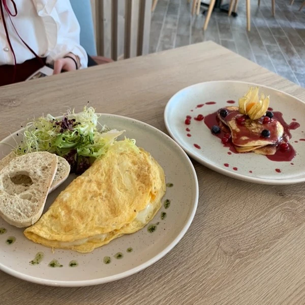 역시 커피를 마셔줘야 머리가 돌아가는 나이가 온 것인가. 따뜻한 커피가 몸에 들어가니 온도도 높아지는 것 같고 머리도 슬슬 돌아갈 준비를 하는 것 같았다. 메뉴판을 구경하며 우리는 아침으로 어떤 것을 먹을까 고민했다. 역시 여행을 와야 아침 메뉴를 고민하게 되는 것 같다. 그 무엇보다 일상에서 아침 메뉴를 고민하는 시간을 가장 아깝게 생각하는 나는 평소 루틴처럼 요거트와 과일, 뮤즐리를 아침 주식으로 먹는다. 제일 속 편하고 루틴으로 삼기에 적당한 금액이기 때문이다. 하지만 오늘은 여행 마지막 날이 아닌가. 남이 해주는 오믈렛을 먹기로 했다.