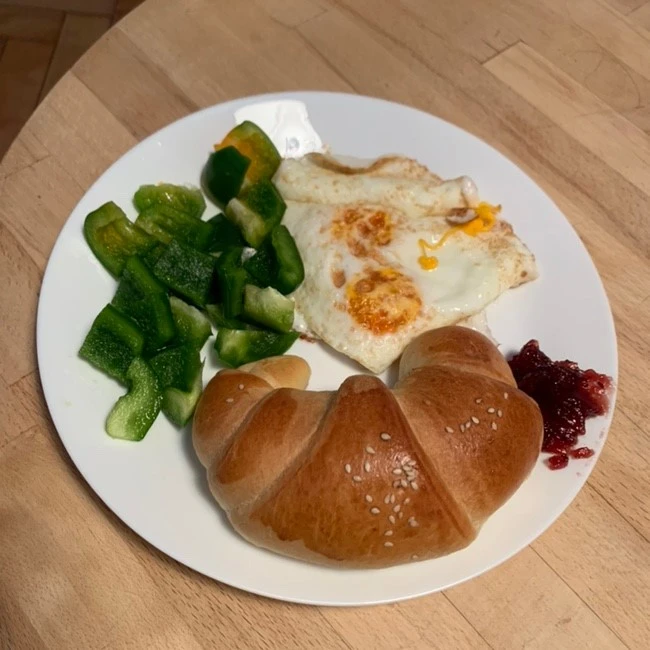 학교 마치고 오는 길, 배고프다는 생각 때문인지 처음 보는 빵집으로 들어가 귀여운 모양의 빵도 샀다. 사실 크로와상처럼 생겼지만 패스추리가 아닌 조금은 밀도 높은 빵이라 실망했다. 하지만 귀여운 모양에 반한 걸 어쩌나. 집에 와서는 계란 프라이(배고프니까 두 개)와 파프리카, 그리고 딸기잼에 가벼운 아점을 먹었다. 이때부터 잘 못된 걸까. 오늘 하루의 식사를 애매한 양과 애매한 시간에 먹어서 그런지 하루 종일 애매한 밥을 먹었다. 뿐만 아니라 오늘 하루도 집안일하고 이것저것 하다 보니 훌쩍 지나가 버렸다. 살짝 하루가 날아간 기분이 든 날인 것 같다. 하지만 매일이 어떻게 항상 폭죽 터지듯이 다이내믹하고 가슴 뛰는 일만 가득할까. 나름의 재충전하는 시간을 가진 것 같아 조금은 편안했다.