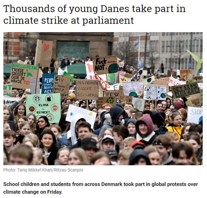 어제 혼자 다녀왔던 크리스티안스보르 궁전에 예은이와 다시 들렀다. 그런데 아니 웬걸? 족히 세어보아도 3천 명 이상이나 되는 학생들이 모여 시위를 하고 있었다. 도로를 점령하는 것은 물론이고 트럭 위에 올라가 마이크를 들고 외치는 등 생각지도 못한 광경에 나는 입을 벌릴 수밖에 없었다. 본인이 직접 만든 것 같은 각양각색의 플래카드부터 팻말까지. 처음에는 공부하기 싫어서 나온 아이들인 줄 알았다. 구글에 검색해보니 지구를 지키기 위해 매주 금요일마다 모여 시위를 하는 청소년들이었다. 유치원에 다닐법한 어린아이들부터 대학교 입학을 바라보고 있는 고등학생들까지 다양한 연령대의 아이들이 모여 환경보호를 위해 어른들에게 경고를 날리는 모습이었다.