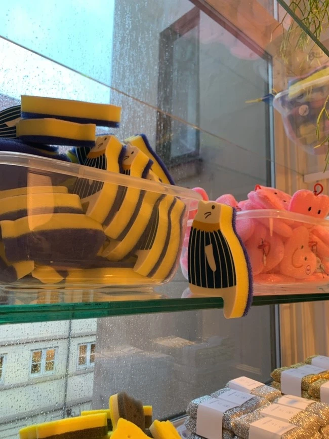 나는 전날 HAY에 들러 한참을 구경했지만 예은이는 한 번도 가보지 못해 다시 한번 들렀다. 일상처럼 익숙한 듯 예은이에게 이곳을 소개하고 다시 한번 더 실내를 둘러보던 중, 너무 귀여운 수세미를 발견했다. 이렇게 귀여울 일인가? 집에 있는 치즈도 생각나면서 고양이만 보면 무엇에 홀린 것 마냥 자연스럽게 사진을 찍는 나를 발견했다. 그리고 폭신하고 비싼 소파에 걸터앉아 잠시 쉬기도 했다.