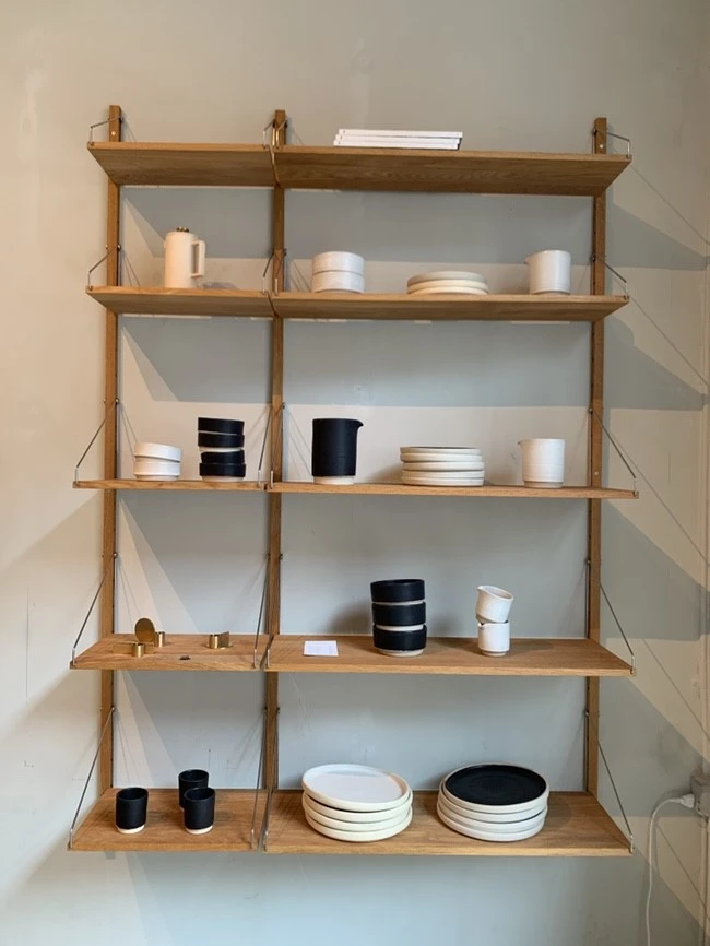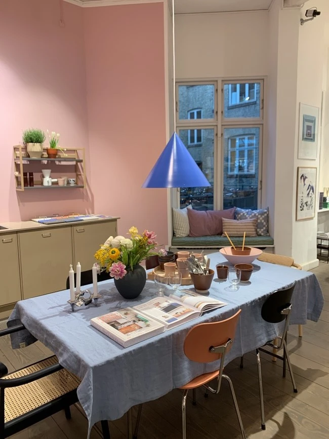 Frama Studio Store. 2008년 처음 브랜드를 론칭한 후 2011년 코펜하겐 중심지의 역사 깊은 건축물에 스튜디오를 마련했다고 한다. 건축 당시 목제 구조물을 고스란히 간직한 건물은 과거와 현재를 동시에 담아내는 공간적 특성이 프라마의 디자인 철학과 잘 맞닿은 곳이었다. 현재는 한국에도 프라마의 제품 일부가 수입되어 편집샵에서 판매되고 있다고 한다. 사실 이곳에 들렀을 때 제일 먼저 눈에 띈 것은 바로 벽 한쪽을 가득 채운 서랍장과 독특한 천장 장식이다. 옛 약국을 개조해서 오픈한 쇼름인 이곳은 들어가자마자 향기도 좋고 예뻐서 눈이 호강했던 것 같다. 약국 천장이라니 믿을 수 없다. 도자기만 아니었으면, 6kg 캐리어만 들고 오지 않았으면 사고 싶었던 그릇부터 핫한 외국인 인스타그램 피드에서 나올 법한 공간의 분위기까지. 취향 저격 제대로다.