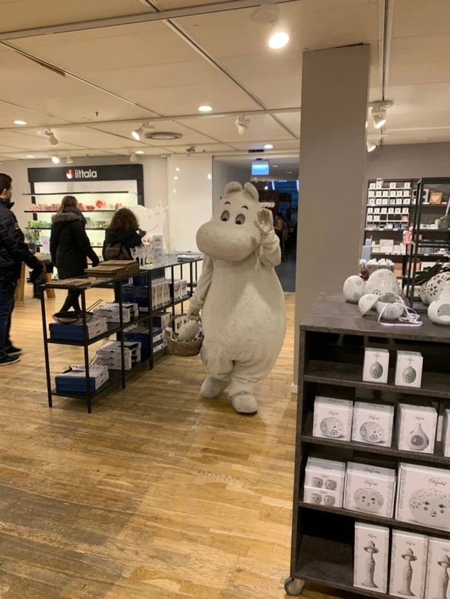 바로 옆 ILLUM 백화점에 있는 루프탑 카페에 가는 길, 귀염둥이 무민을 만났다. 한국에는 뽀로로가 있다면 덴마크에는 루민이 대표 캐릭터이다. 무민의 하얀 털은 살짝 더러워져 꼬질꼬질했지만 그것마저 귀여웠다. 사진 찍을 거라고 포즈 취하라는 듯이 몸짓으로 알려주니 정말 귀여운 자세를 취하고는 쿨하게 사탕도 주고 갔다. 무민이가 갈 길 가는 뒷모습까지 지켜보고 있자니 심장이 아파 광광 울면서 엄지를 들었다. 최고