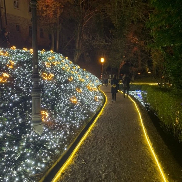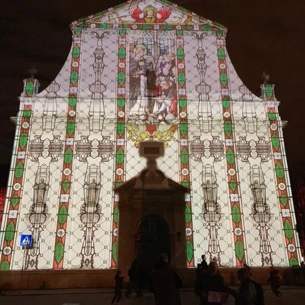 역시나 자그레브에서 열리는 몇 없는 행사라 그런지 많은 사람들이 한 방향으로 걸어갔다. 저기구나! 마치 내비게이션을 찾은 것 마냥 우리도 한쪽을 향해 걸어갔다. 옐라치치 광장에서 약 10분 정도 걸었을까? 자그레브 시내를 한눈에 볼 수 있는 고지대로 향하는 곳부터 빛 축제가 시작되었다. 낮에 보면 하얀 빈 벽인데 여기에 빔 프로젝터를 쏴서 예쁜 교회 모습으로 재탄생했다!