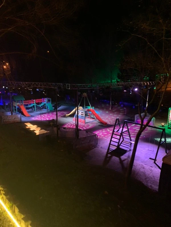 놀이터는 여러 가지 색으로 입혀진 조명이 사방을 비추었고 클럽 노래로 어린이를 위한 공간에서 어른이를 위한 공간으로 바뀌었다. 지나가는 아이 얼굴을 보자니 당황한 기색이 역력했다. 미안해 어른이 사과할게.