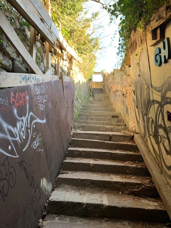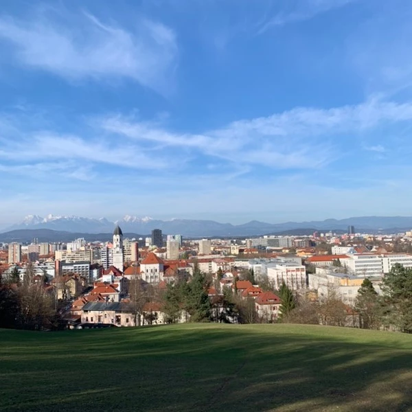 어디부터 갈까 하다가 숙소 근처에 있던 '류블랴나 성'에 가기로 했다. 걸어가는 길이 조금은 가팔랐지만 조금씩 조금씩 보이는 류블랴나 시내 전체가 한눈에 들어와 조금 숨찬 것은 문제가 되지 않았다. 올라가는 길에 발견한 언덕과 건물들, 그리고 탁 트인 하늘에 펼쳐진 몽글몽글한 구름마저 너무나 아름다웠다. 류블랴나 성을 들어갈 수도 있었지만 유적지에 딱히 관심이 없는 우리는 고민하지도 않고 바로 패스했다.