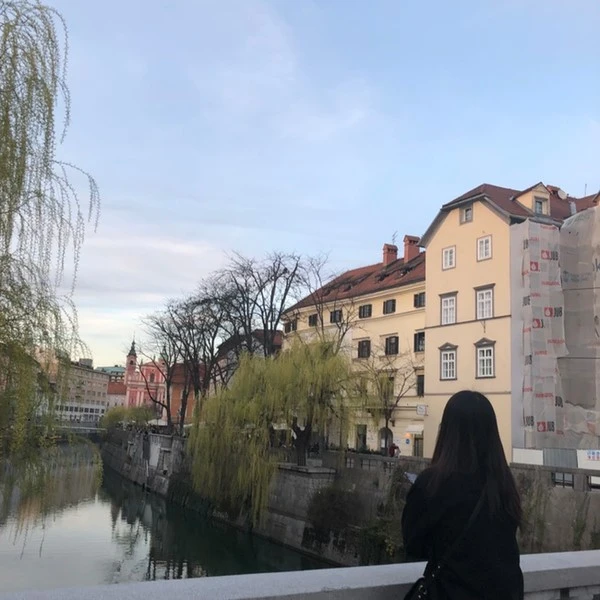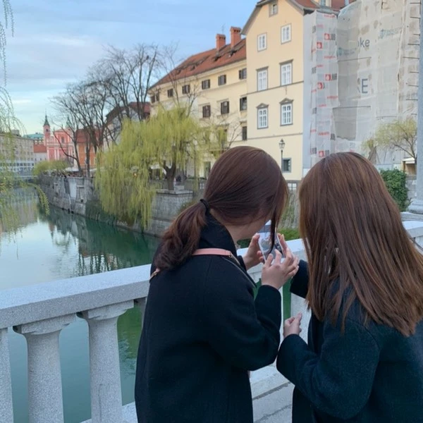 사진 한 장을 건지기 위해 머리를 맞대고 회의하는 두 사람. 사실 이 두 사람은 중간에 나라는 사람이 없었다면 서로 알 수도 친해지지 않았을 것 같다. 하지만 각자 "우연"이라는 인연 덕분에 이곳 슬로베니아까지 여행을 오게 되었다. 너무나도 신기한 사이가 아닐 수 없다. 최선을 다해 서로를 찍어주고 나까지 인생 샷을 찍어주겠다며 다리 한쪽으로 나를 세웠다. 날씨가 도와줘서 다 한 것 같은 류블랴나를 배경으로 정면은 부끄러우니 뒷모습이라도 사진을 남겨보았다. 역시 뒷모습이 마음에 든다.