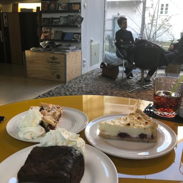 유럽으로 놀러 오는 체력 거지들에게 하고 싶은 조언 두 가지. 하나는 평소에 스쿼트(다리 운동)를 열심히 할 것. 그리고 나머지 하나는 습관처럼 주머니에는 초콜릿이나 사탕을 들고 다닐 것. 많은 거리를 걸어 다녀야 하다 보니 자주 당이 부족해져 지치곤 한다. 직접 몸으로 겪어야 아는 나는 이날 당도 떨어지고 배도 고파져 얼른 근처 카페로 향했다. 왼쪽에 보이는 많은 케이크 중 우리는 고민도 하지 않고 1인 1 케이크를 주문했다. 그리고 귀하디 귀한 얼음이 담긴 커피(콜드 브루)도 한 잔 주문했고 양이 생각보다 적어 하마처럼 벌컥벌컥 마셨다. 자두 파이, 치즈케이크, 브라우니까지. 오늘도 역시나 모든 메뉴는 성공적이었다.