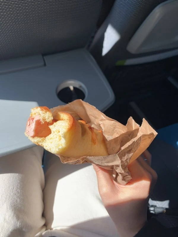 너무 여유로운 아침을 보낸 걸까. 아침과 점심 식사를 모두 건너뛴 나는 버스터미널 한편에 위치한 빵집에서 빵 하나를 샀다.(사실 시간이 부족한 탓에 나는 버스정류장 플랫폼을 알아보고 룸메이트가 소시지 빵을 사다 주었다. 버스정류장은 항상 올 때마다 플랫폼을 알아야 하는 구조다. 이렇게 비효율적일 수 있을까?) 맛은 그럭저럭 딱 저렴한 가격만큼의 맛이었다. 너무 평범해서 별점을 주기도 애매할 정도였다. 밀가루와 소시지 본연의 맛.