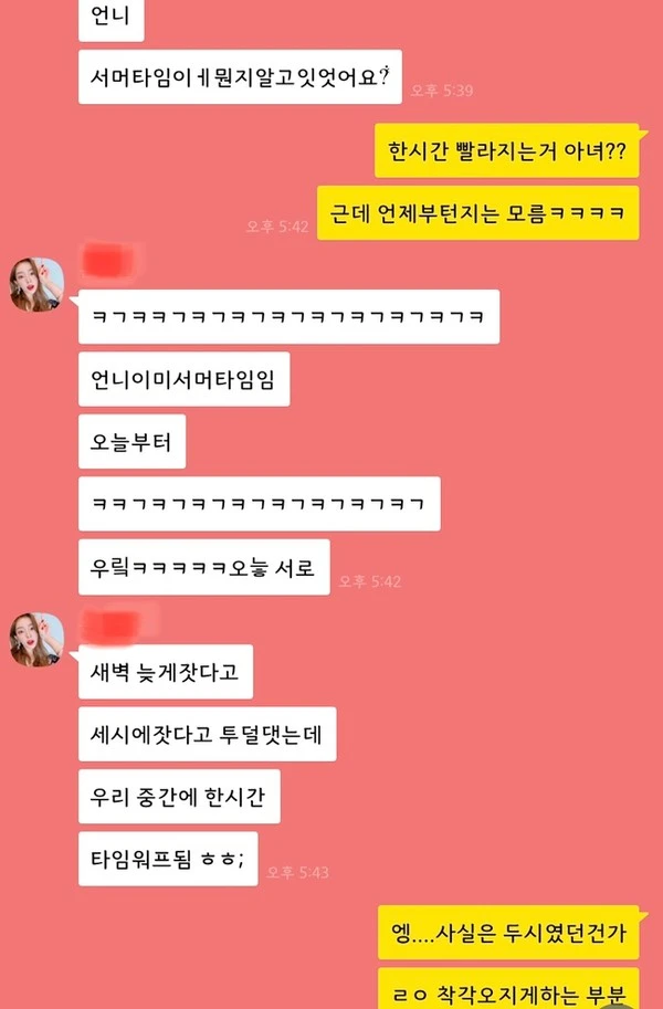 정말 태어나서 처음이다. 후배 지원이에게 연락이 와 한참을 수다 떨었는데 갑자기 서머타임이란다. 부엌 한편에 붙어있는 시계를 확인해보니 한 시간 정도 늦어서 고장 난 줄로만 알았다. 하지만 사실은 이 날부터 서머타임이 시작해서 나도 모르게 한 시간 빠르게 타임워프 한 것이다. 기분 탓이겠지만 괜히 이 날만큼은 시간이 더 빨리 흘러가는 것처럼 느껴졌다.
