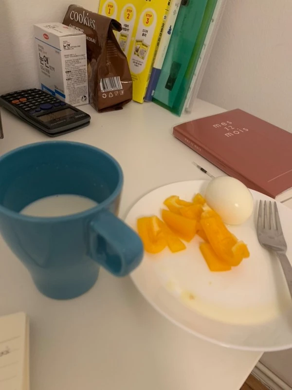 오늘도 삶은 계란과 파프리카로 마무리하는 하루. 맛있는 걸 먹으면 분명 좋겠지만 뭘 먹을지 끼니때마다 고민하는 게 더 싫어서 선택하는 저녁 메뉴.
