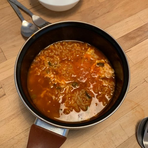 집에 와서는 갑자기 매운 게 당겨서(해장을 하고 싶었던 걸까, 안주가 필요했던 걸까) 엄마가 보내준 불닭 라볶이를 해 먹었다. 너무나도 맛있었지만 매운맛의 최약체가 되었는지 눈물, 콧물이 폭풍 흘러내렸다. 고통스러워하면서도 휴지로 닦으며 흡입했다. 이제 어디 가서 매운맛 좋아한다는 말 못 할 것 같다.