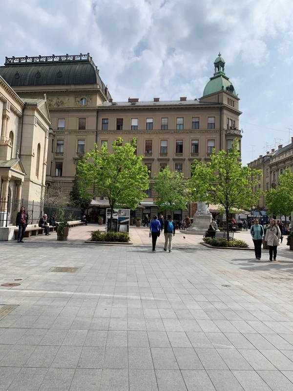 다음 날, 교환학생으로 자그레브에 온 후 처음으로 시험을 치는 날이다. 중간고사를 치러가는 길, 비가 온 후라 그런지 하늘도 맑고 공기마저 상쾌하다. 나에게는 나름 역사적인 날이어서 등교 길을 살짝 찍어봤는데 너무 감성 넘쳐서 놀랐다. 내가 이렇게 아름다운 곳에서 살고 있었나? 너무 익숙해지는 일상의 소중함을 잊지 않았으면 좋겠다, 지수야. 나름대로 공부한 것을 녹여 시험을 잘 치르고 왔는지는 아직 잘 모르겠지만 그래도 최선을 다했다는 점에 박수를 (속으로) 쳐 주었다. 후련하게 학교에서 나와 장을 보고 집으로 돌아갔다. 우리 집에서 옐라치치 광장으로 가는 길 중간에 위치한 한 광장인데 요 며칠 비가 왔다고 그전에는 앙상한 가지만 있던 나무에 초록 초록한 풀이 엄청나게 자랐다. 앞으로 비는 그만 오고 얼른 더 푸릇한 풀이 많이 나왔으면 좋겠다.