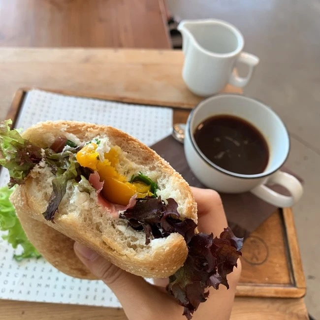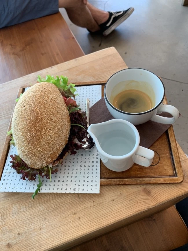프라하까지 거의 잠을 못 자고 와서 그런지 이날 아침은 꼭 커피를 마셔줘야 할 것 같았다. 따뜻한 커피를 딱 한잔 마시고 나니 다시 한번 느끼는 최고의 선택. 사실 무슨 샌드위치인지도 모르고 주문했지만 한입 먹어보니 나름 맛있었다.